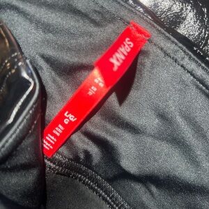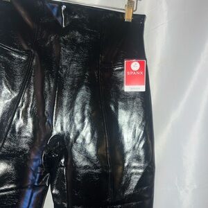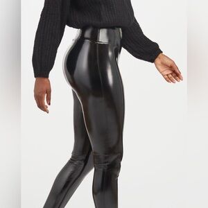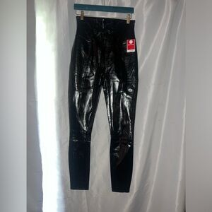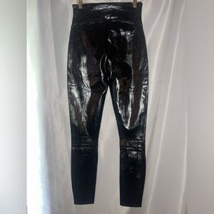 Spanx Size L Tall Latex Black Shiny Leggings Pull On Inseam 30” #J2