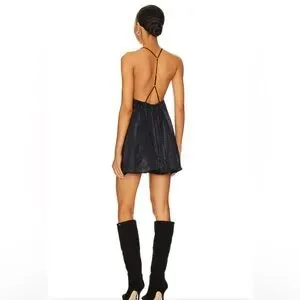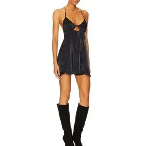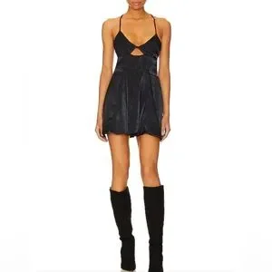 This black dress, crafted from voile fabric, offers a girly charm amplified by flirty cut-outs