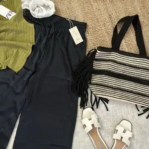 NWT Joie black 100% silk pants wide leg palazzo