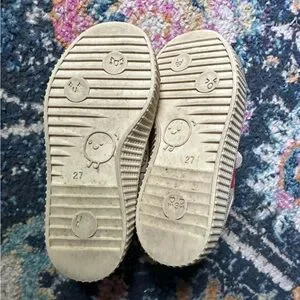 These sweet canvas kids sneakers are ready for new feet! My little guy loved these sneakers in his rotation. Easy for him to put on and take off by himself was very helpful. The natural rubber sole has lots of tread life left.