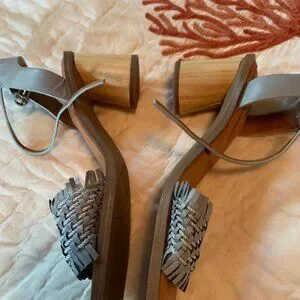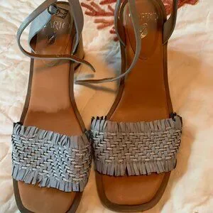 FRANCO SARTA RAFFIA BLUE SANDALS WITH WOOD HEELS SZ 9 NWOT