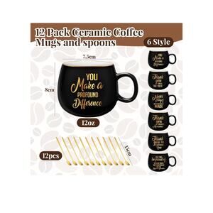 Tioncy 12 Sets Employee Appreciation Gifts 12 oz Ceramic Coffee Mugs with Spoons