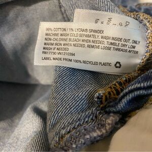 Classic overalls. Straight leg cut, raw, distressed hem, pockets, front chest pocket. Button sides, adjustable straps. 14.5” waist, 26.5” inseam