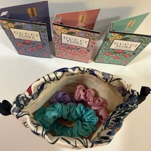 - Beautiful Gucci Flora Drawstring Pouch that Comes with 3 Satin Hair Scrunchies