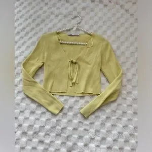 ZARA Lime cardigan knit tie up chest
