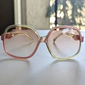 Ivan Karachov 70's Oversized Sunglasses ๐ Clear Yellow Frosted Coral Pin