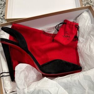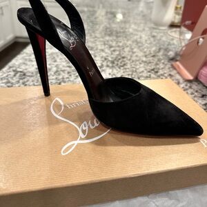 Christian Louboutin Astrid Sling Black Suede Pumps. Gently used (worn 1 time)