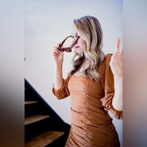 Abercrombie brown/burnt orange ruched / cinched dress size Small