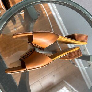 TORY BURCH Bombe Miller Slide 25MM Sandal. Size 8.5. Leather. Color is Caramel. NWOT. Note slight damage on insole from store sticker.