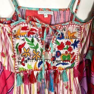 Modaposa Women's Vibrant Cold Shoulder Top XS Pink Blue Embroidered Boho Summer