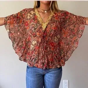 sheer with boho angel wing sleeves and a warm toned color pallet
