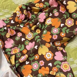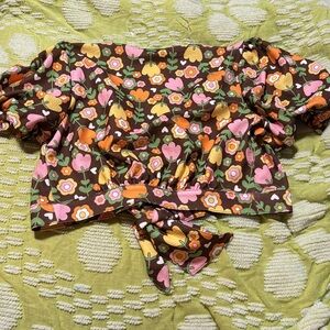 Sz. Large. Stretch around arms. Hook and eye closures on the front. Cropped 70s style flower power top! NWT never worn.
