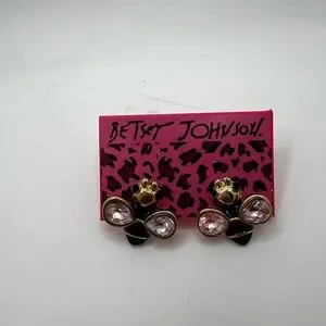New Betsey Johnson Bee with Pink Rhinestone Wings Earrings