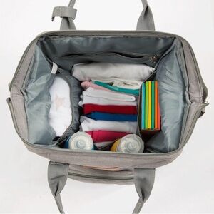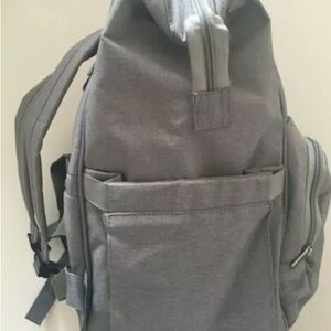 Stylish Gray Multi-Function Diaper Bag Backpack with Changing Pad.