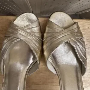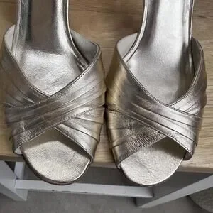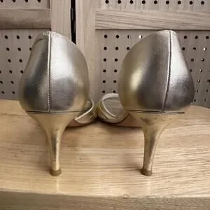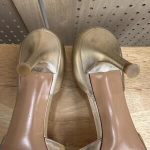 Stuart Weitzman Gold Heels Open toed Pump Sz 9