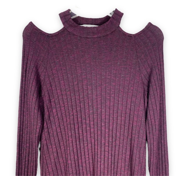 - mock neck , cold shoulder cutouts