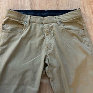 Nike men’s dress pants in tan. Waist 32” and length 30”. Anti slip line at the interior of the waist.