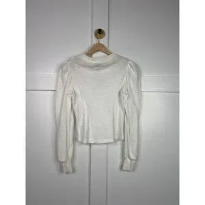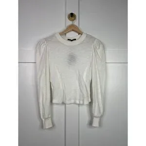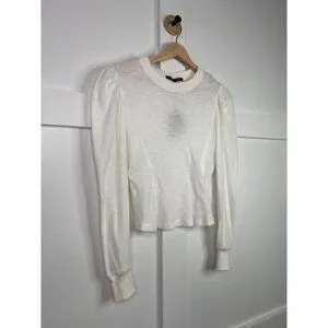 NEW Marissa Webb Blair Waffle Knit Puff Sleeve Pullover Top White Size: XS
