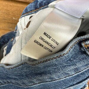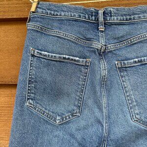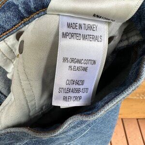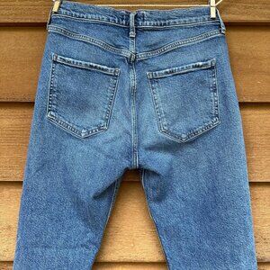 Good condition !Stylish and trendy Agolde Riley Crop Blue Jeans with a high waist and straight leg fit. Features a unique button fly closure for a vintage appeal. There is a very light mark under the right back pocket but it’s hard to see. Some stretch. 99% Cotton 1% Elastane