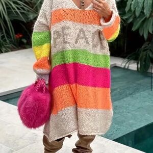 NEW! Color Block Crew Neck Dress/Cover Up with “PEACE” on front. Slight Stretch. Loose fit. Soft knit fabric. Size 1XL (14). Bust is about 42.2”-44.5”. Hip is about 46.1”-48.5”.