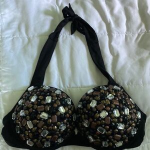 VICTORIA'S SECRET Black embellished Bombshell Y2K Rhinestone Bikini Top 36C