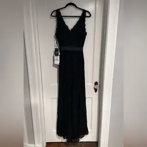 Beautiful NWT Adrianna Papell long, sleeveless, v neck gown with lace and removable ribbon belt.