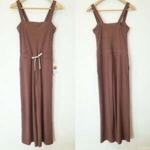 Vuori Mudra Jumpsuit Women's Ribbed Drawstring Pockets Athleisure Hazelnut NWT