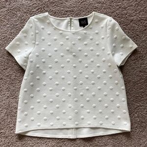 W5 Polka Dot White Short Sleeve Top Zipper Detail Women’s Size Medium Office