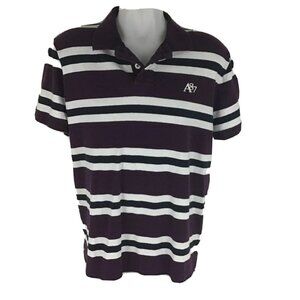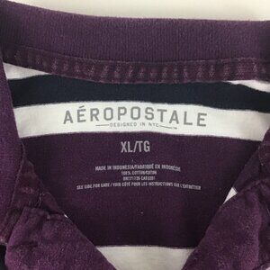 Men's Aeropostale Short Sleeve Polo Collared Dress Shirt Purple Striped Size XL