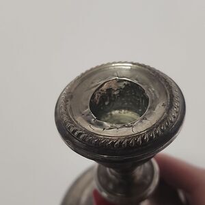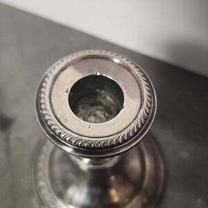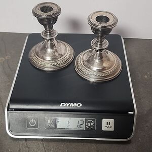 Tested for sterling. 1 lb 1.2oz. these Candlesticks do show some dings, scratches, damage, candle residue.