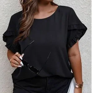 Plus Print Petal Ruffle Short Sleeve Blouse
