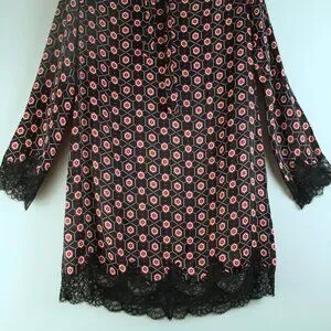 Sandro Paris Black Satin Red Floral Tie Neckline Lace Trim Mini Shift Dress 2