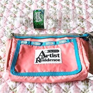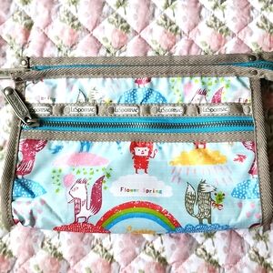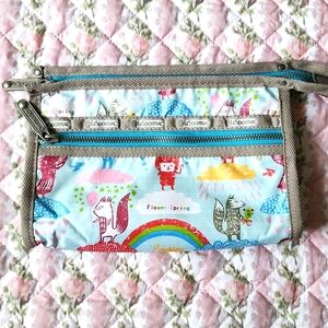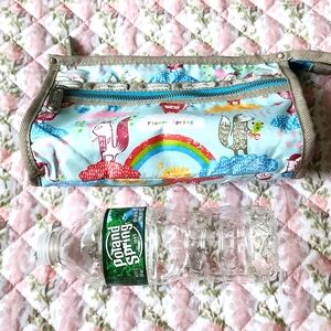 Rare Lesportsac Artist zipper pouch rainbow sky blue pink inner bird art cosm…