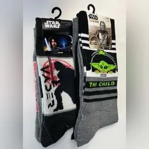 2 Packs Star Wars Mandalorian & Obi-Wan Kenobi Crew Socks Men’s Size:6.5 - 12