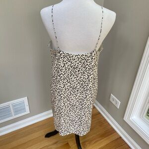 Tibi | 100% silk slip dress, white and brown leopard print, Sz 10