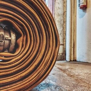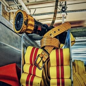 Firehose belt with solid brass buckle and keeper