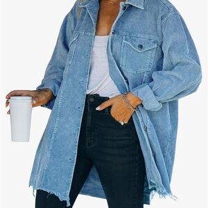 Women's Retro Distressed Corduroy Shacket Jacket Oversized Midi-Long Fringe