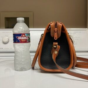 Dooney & Bourke Black / Tan Vintage Leather Satchel Crossbody Purse