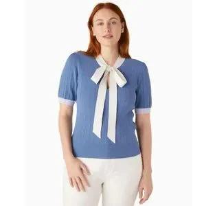 kate spade Colorblock Bow-neck Sweater top blouse blue white size small brand new with tags
