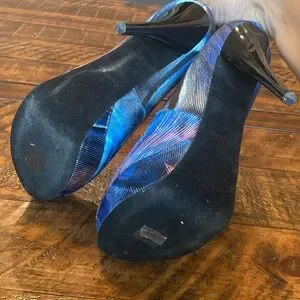 ALDO Jerolda Pumps size 8. Very gently worn awesome shoes. Blue variations with some purples and other tones. Comfortable for a 5" heel. Great way to spice up that little black dress. Stored in bags in box.