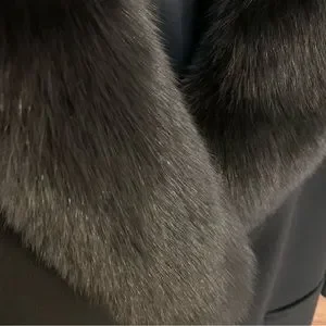 Caruana Wool Coat with Fox Fur Collar, Fabric by Loro Piana Mid Length Size 12