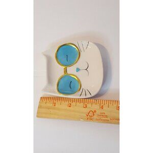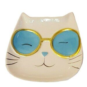 Cool Cat Trinket Jewelry Tray Nightstand Dish Plate Ceramic White Sunglasses