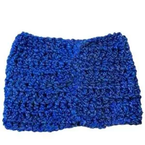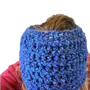 Hand Crafted Hat Headband Blue Crochet Pony Tail Beanie Chunky Ear Warmer Wrap