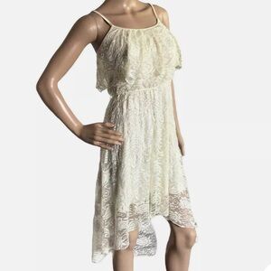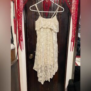 M AUW Lace cream midi high low tank dress elastic waist (missing belt)