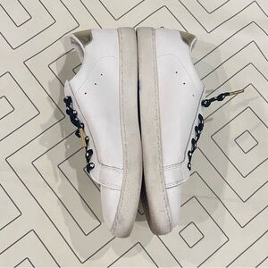 Size 8.5. White and Black Multi lace up sneakers. Black laces with white star pattern. Gold heels. EUC. Soles need cleaned but in overall great condition. No trades.