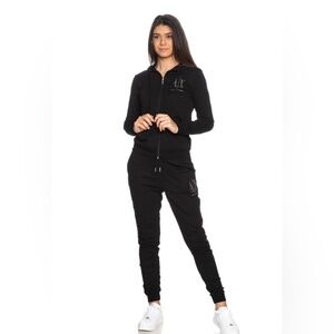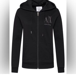 Armani Exchange hoodie & sweatpants set, Black silver stud icon logo, zip up hoodie,
