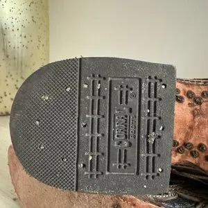 New, only tried on a couple of times. Just a tad too small for me. Supple distressed leather, leather soles, leather lined. Measurements in photos.