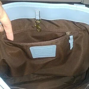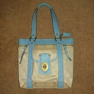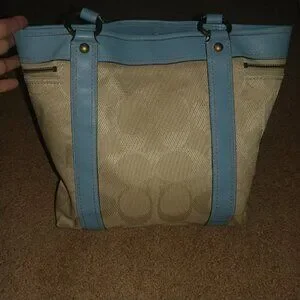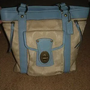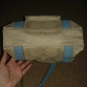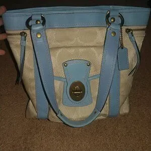COACH Gigi Legacy Signature-C Canvas Shoulder Bag W/Blue Leather Trim