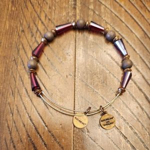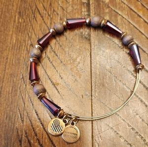 3 piece boxed set Alex and Ani gold tone with cranberry prism, gold and wood beads