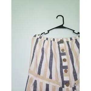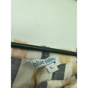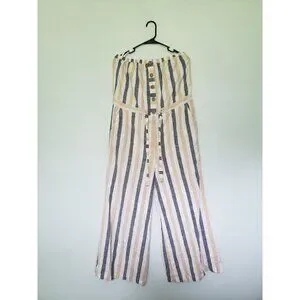Blue Island Womens Sz L Jumpsuit Strapless Stripe Button Front Drawstring Tie